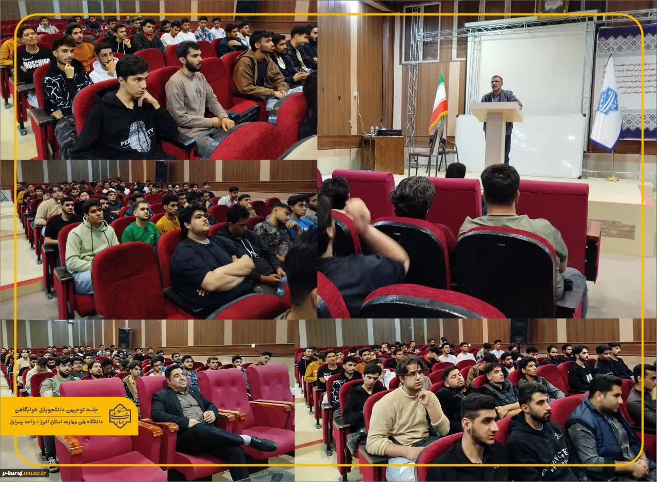 امتیاز دهید : برگزاری جلسه توجیهی دانشجویان خوابگاهی ورودی نیمسال اول 1404-1405 دانشگاه ملی مهارت واحد استان البرز-پسران کرج 2 سهشنبه 13 آبان 1404 ساعت 10:02