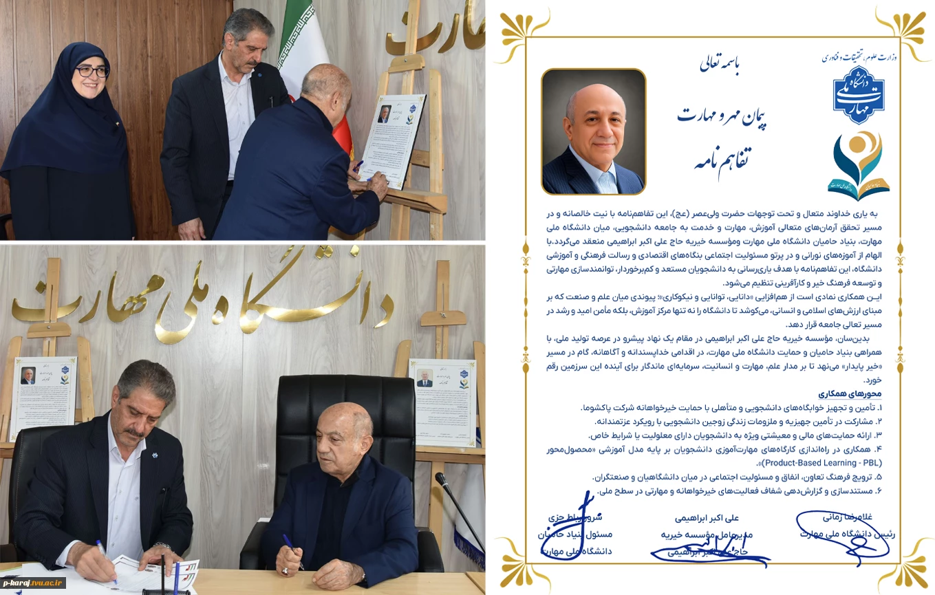 امتیاز دهید : به همت بنیاد حامیان دانشگاه صورت گرفت؛ امضای تفاهمنامه همکاری مشترک در دانشگاه ملی مهارت 2 شنبه 17 آبان 1404 ساعت 7:41